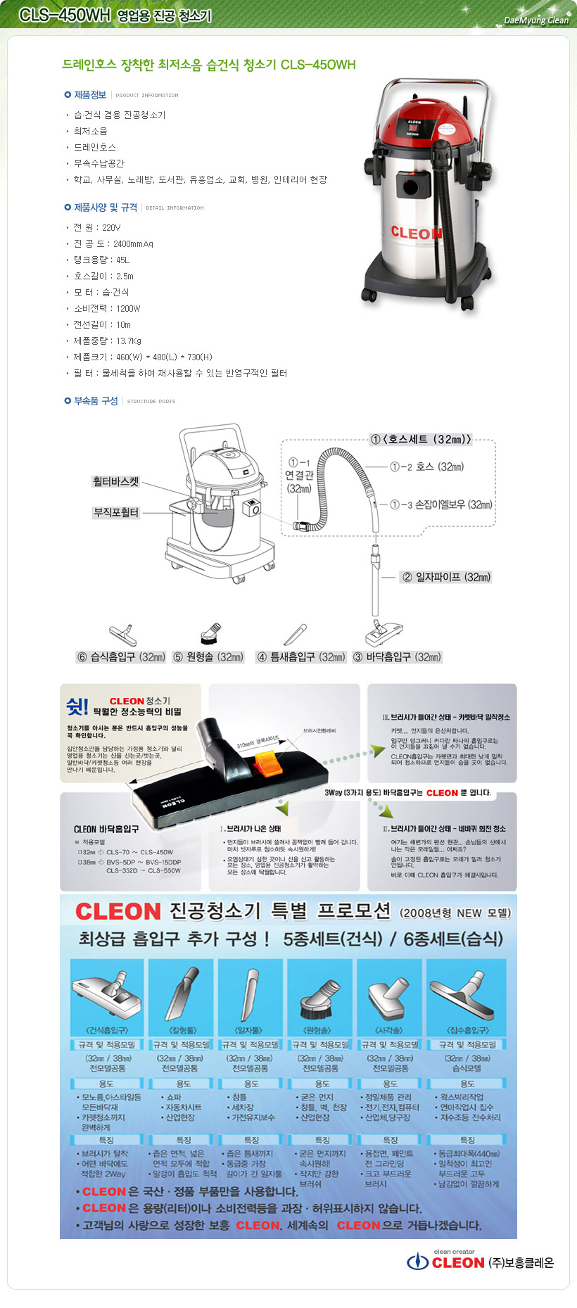 CLS-450WH/45 ¸®ÅÍ/Áø°øÃ»¼Ò±â/°Ç½Ä/½À½Ä/°â¿ë/¹è¼ö/È£½º/¼ö³³/¾÷¼Ò¿ë