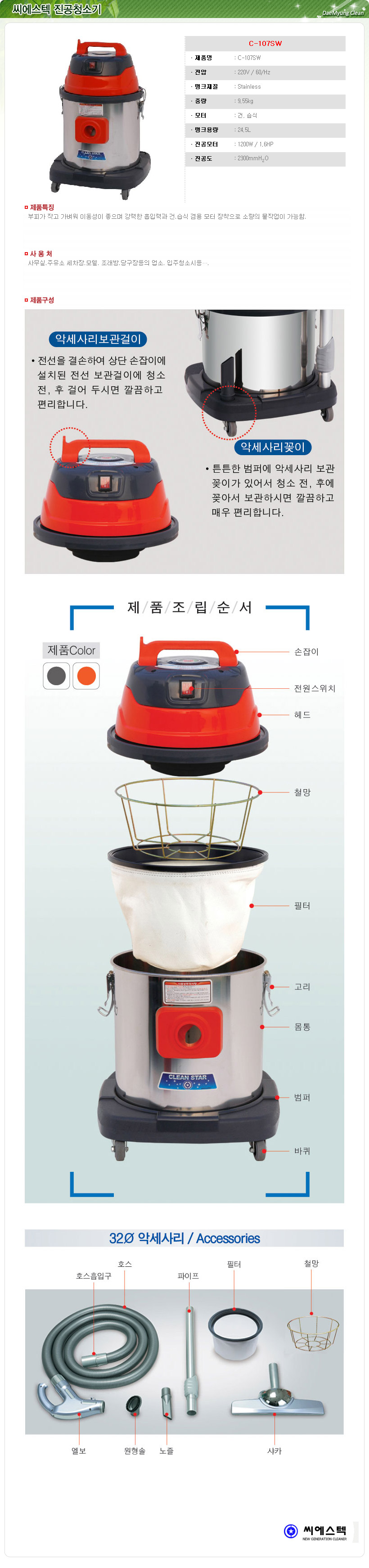 Áø°øÃ»¼Ò±â C-107SW 24.5§¤/¾¾¿¡½ºÅØ °Ç½Ä ½À½Ä ¾÷¼Ò¿ë/¸ÕÁö Á¦°Å û¼Ò