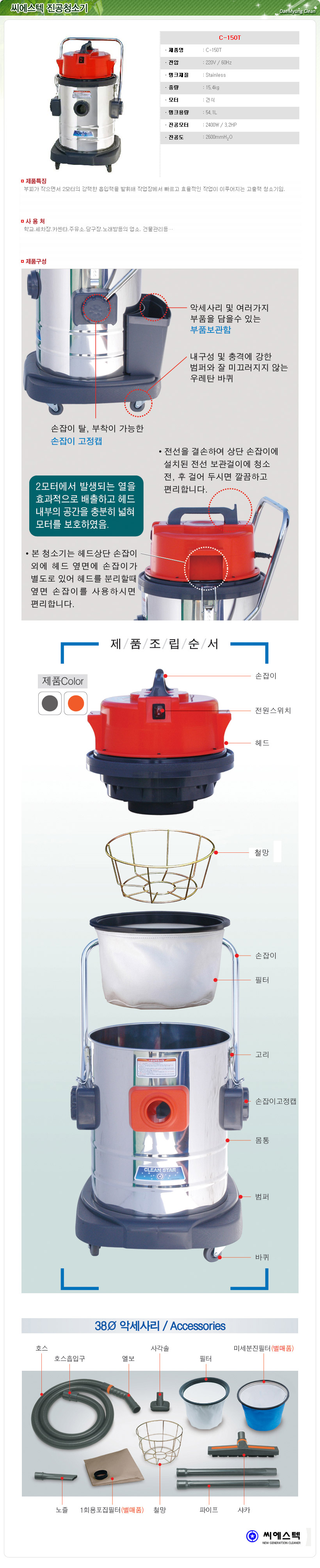 Áø°øÃ»¼Ò±â C-150T 54.1§¤/¾¾¿¡½ºÅØ °Ç½Ä ¾÷¼Ò¿ë/¸ÕÁö Á¦°Å û¼Ò/2¸ðÅÍ